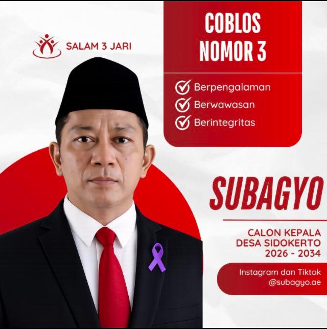 Namun, Bagyo tidak asal maju dalam Pemilihan Kepala Desa Sidokerto yang akan dilaksanakan 24 Mei 2026. Dia sudah punya program yang diharapkan bisa membuat Desa Sidokerto bakal lebih bagus dibandingkan sebelumnya dengan tidak melupakan kesejahteraan dan kemakmurann warganya.